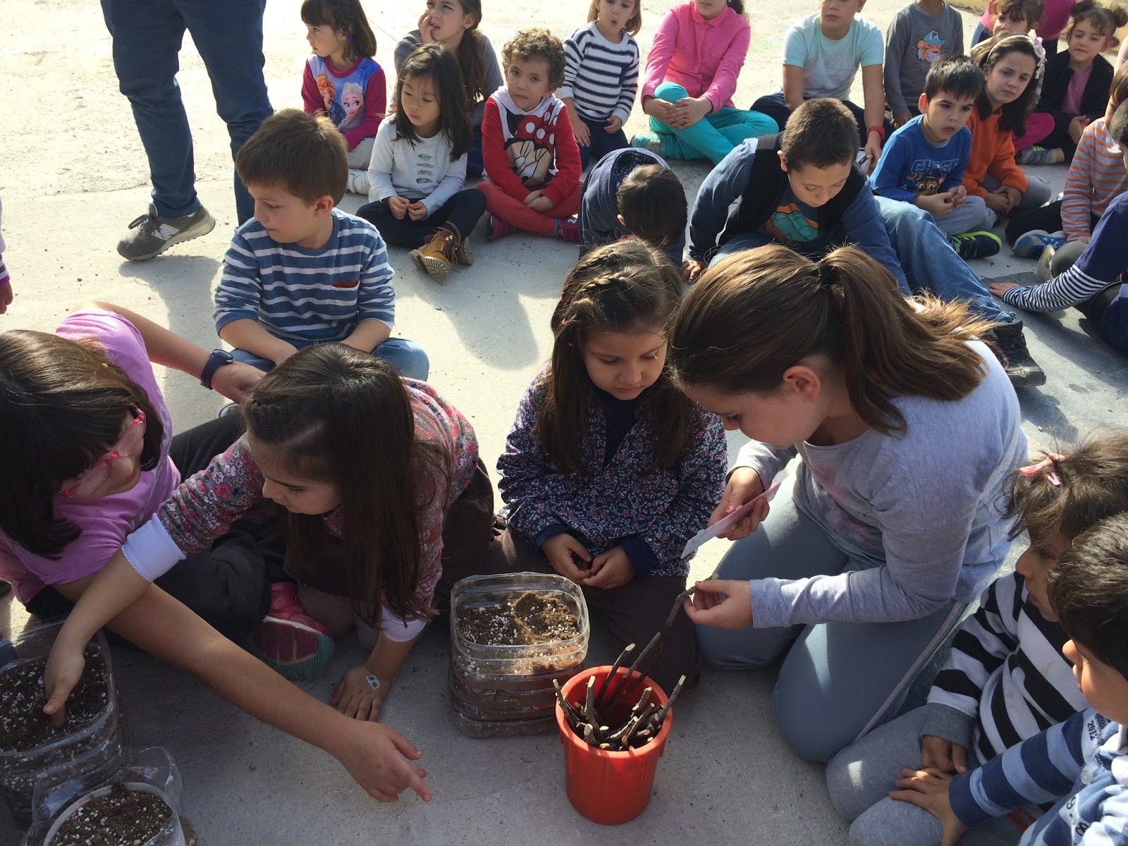 Los alumnos mayores han explicado a los pequeños qué plantas iban a sembrar y el proceso para hacerlo.