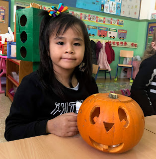 En nuestra clase también hemos participado en el Concurso de Calabazas para el día de Halloween, mirad que chulas están...